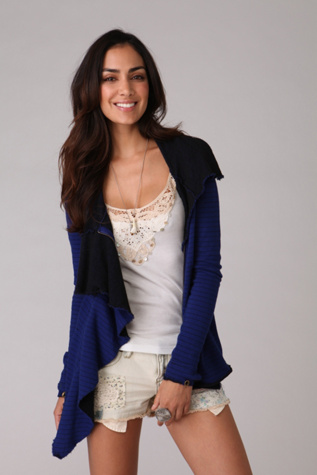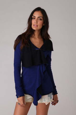 Loving this ruffled/zipper sweatshirt from Free People. A lot of times, their stuff is too "romantic" for me (too many prairie prints/styles and patterns, pastels and rose prints), not to mention seriously overpriced. But occasionally they hit the mark. (ps having looked at the pics again, I think I might like the cream even more than the blue...)